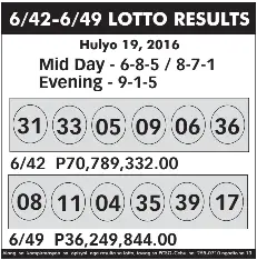 Below is the recent 6 49 lotto result with its jackpot prize released by philippine charity sweepstakes office pcso.