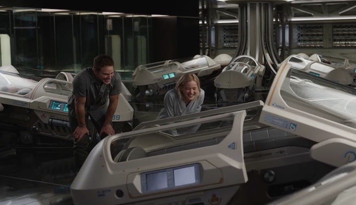 Jennifer lawrence and chris pratt has a lot of fun while shooting the passengers.